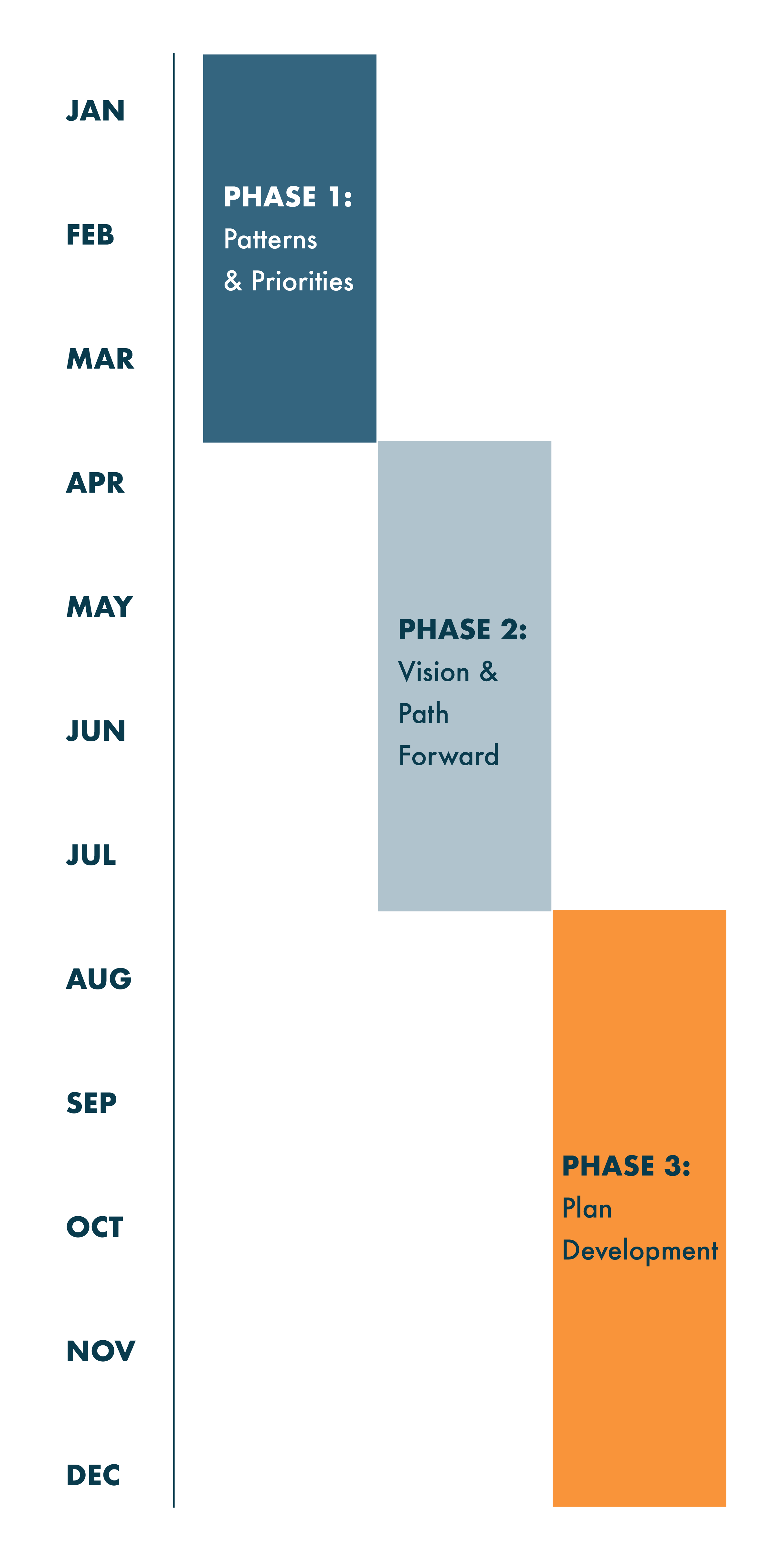 The Plan Los Alamos process began in January 2026 and will feature three overlapping phases of work. That work will culminate in November and December 2026, when the plan will be ready for review by the Los Alamos County Planning and Zoning Commission and the County Council.
